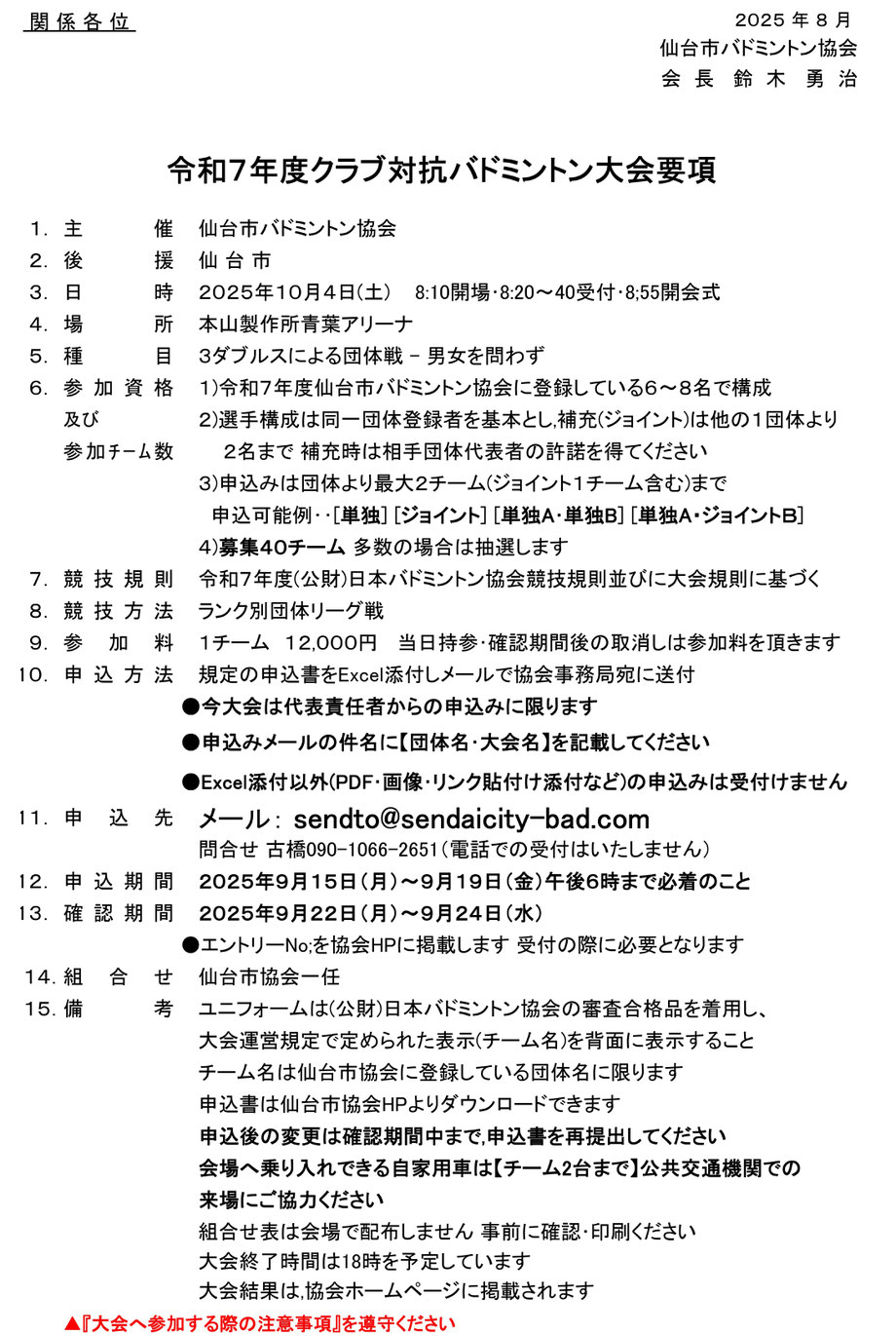 ◇チーム構成は同一登録者を基本とし,補充(ジョイント)は他の1団体より2名まで,相手団体代表者に許諾を得てください