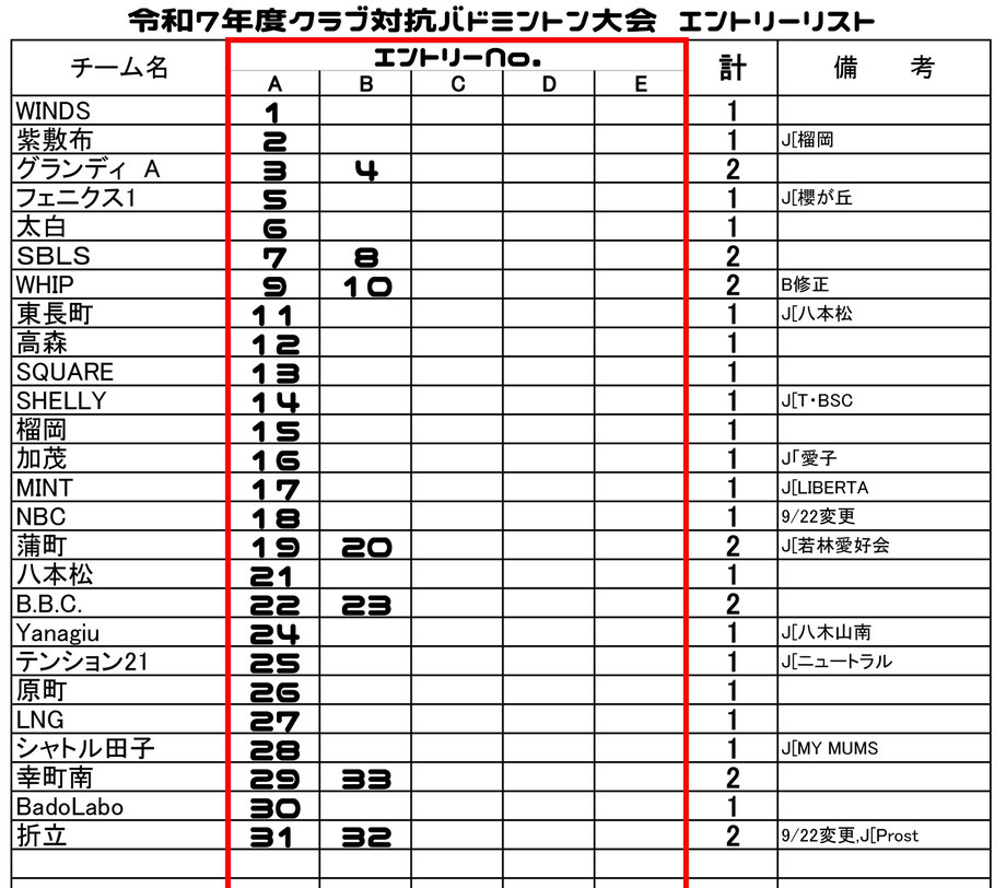 ◆先着ではありません 構成メンバー確定の上お申込みください●エントリーリストとお申込み内容に相違ある場合は,申込書を添えて再送ください