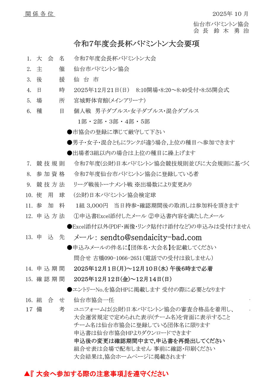 【大会に参加する際の注意事項】を参加される選手のみな様は,ご確認の上来場ください